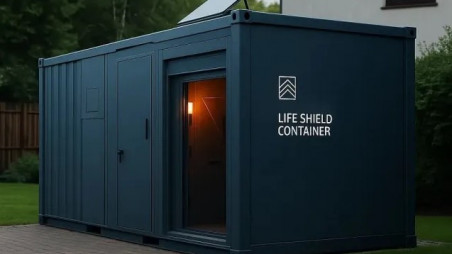 A functional bunker designed as a shelter in emergency situations. Equipped with fixed benches and designed to provide protection in the event of external incidents. Designed for professionals or government agencies.